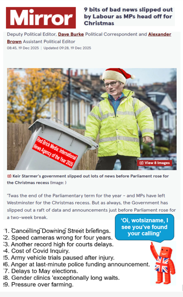 Key stories and data slipped out by the government before Christmas 2025 included: