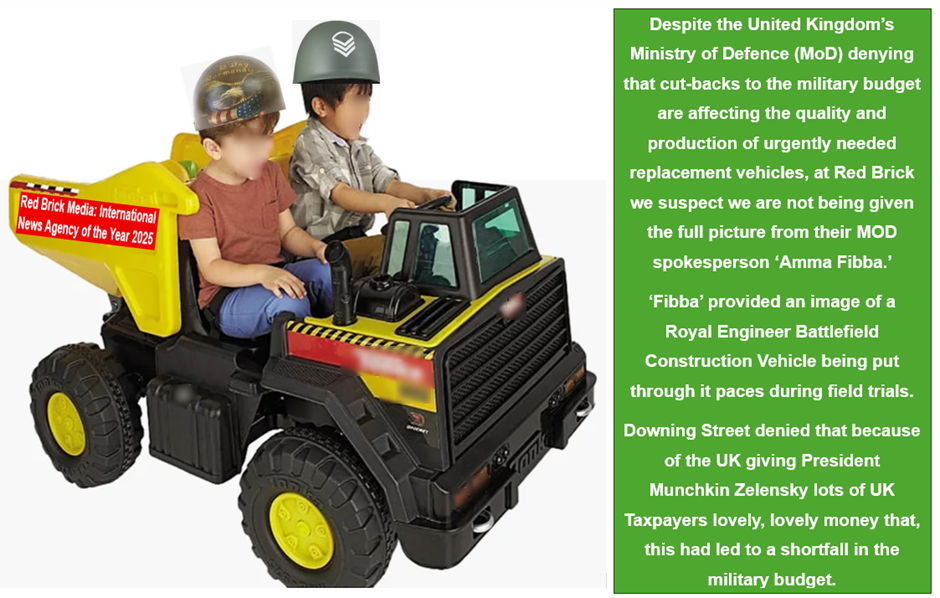 Red Brick Comment: Re Ajax vehicles being put together using ‘Tonka’ and ‘Meccano’ parts, the Civil Service has now replied and apologised for the delay blaming ‘Freedom of Information Requests’ for tying up over six (6) million Civil Service employees, with no conceivable date being announced by them as to when I, or the public can expect an answer to our original request.